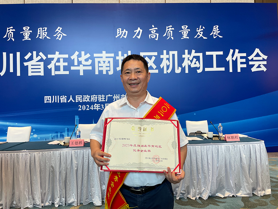 昕恒泵業董事長江勁松獲得2023年度四川在華南地區優秀企業家榮譽